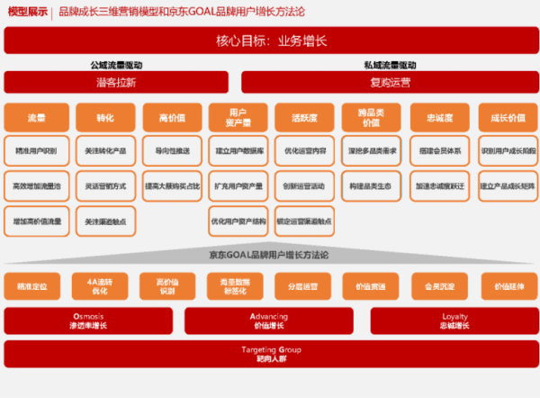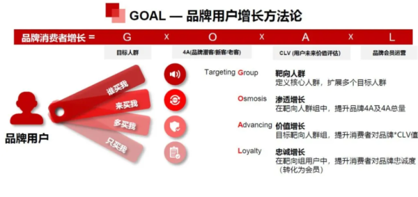 京東GOAL方法論希望能夠針對不同品類的特點(diǎn),不同品牌發(fā)展階段,以及不同品牌的預(yù)算和增長目標(biāo)來為品牌提供更加定制的解決方案,實(shí)現(xiàn)“誰買我”-“來買我”-“多買我”-“只買我”的全鏈路精細(xì)化運(yùn)營。在捕捉消費(fèi)者整個(gè)決策鏈路觸點(diǎn)信息的基礎(chǔ)上再深度溝通和運(yùn)營,從而更好的拉近與消費(fèi)者的關(guān)系、影響消費(fèi)者、進(jìn)而將他們轉(zhuǎn)化成品牌的用戶。