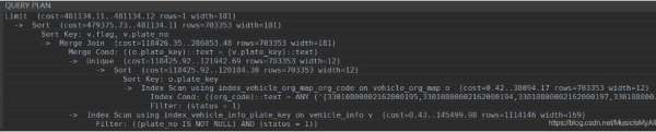 上圖中的 Index Scan代表索引掃描, Index Cond代表索引命中,后面是命中的具體的索引; Filter是過濾條件,跟具體的sql有關(guān), 注意sort, sort中應(yīng)該是有兩行,下面的圖示中能夠看到, 第一行代表對(duì)那個(gè)鍵進(jìn)行排序, 第二行是排序方法(主要有內(nèi)存排序和磁盤排序,應(yīng)該避免磁盤排序)和數(shù)據(jù)大小。