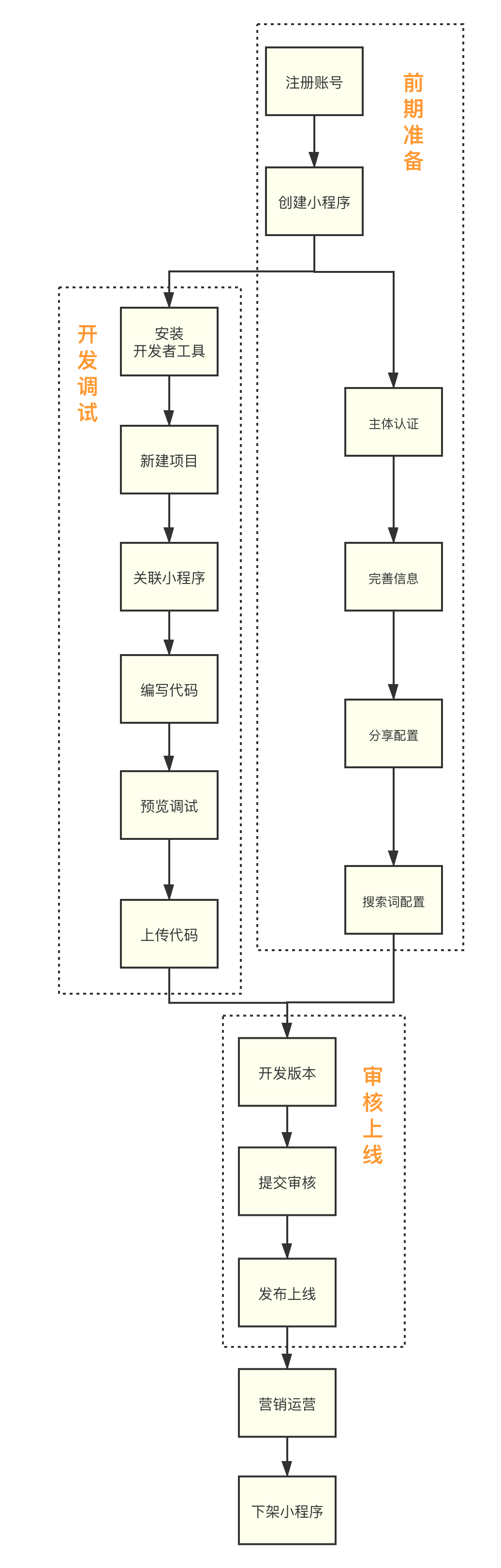 進(jìn)入平臺后首先創(chuàng)建您的小程序并開始開發(fā),具體的創(chuàng)建步驟講解可以查看 小程序接入流程,需要經(jīng)歷以下的幾個階段:
